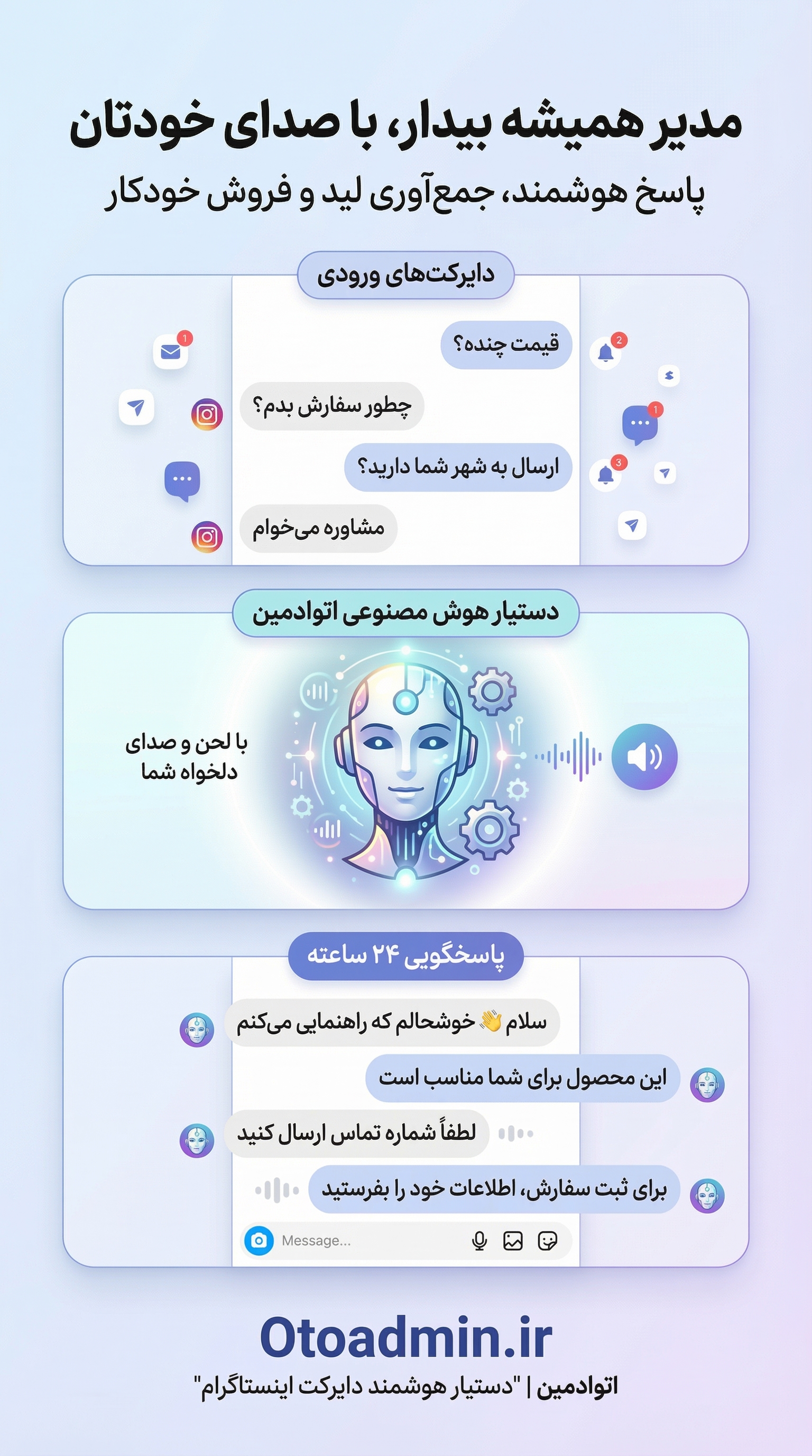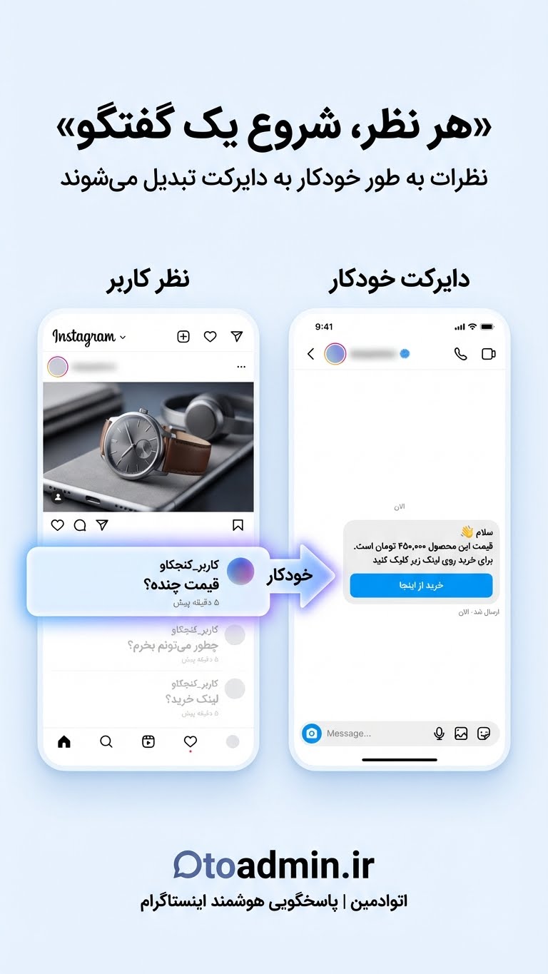 سرویس «کلمه کلیدی ← دایرکت» عالیه. مشتریها فوری جواب میگیرن، فشار پشتیبانی ۷۰٪ کم شد.