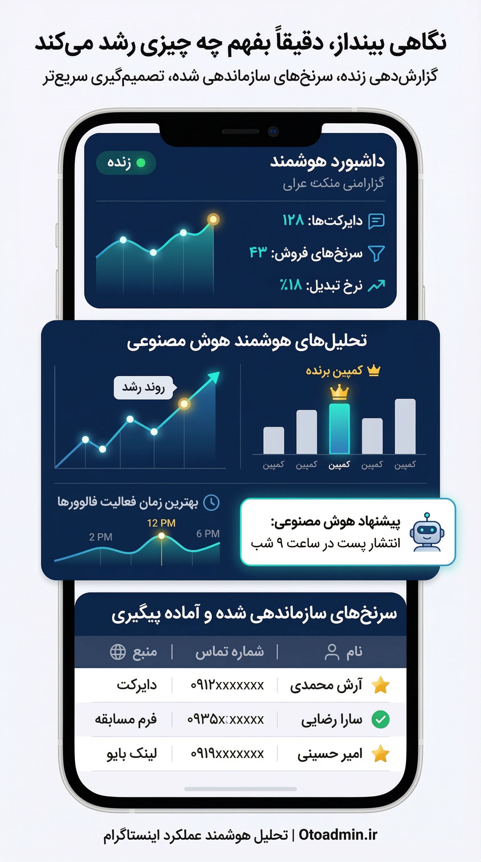 گزارشهای هوش مصنوعی رو دوست دارم. پستهای پرفروش و زمان پاسخ رو توی یک نگاه میبینم.