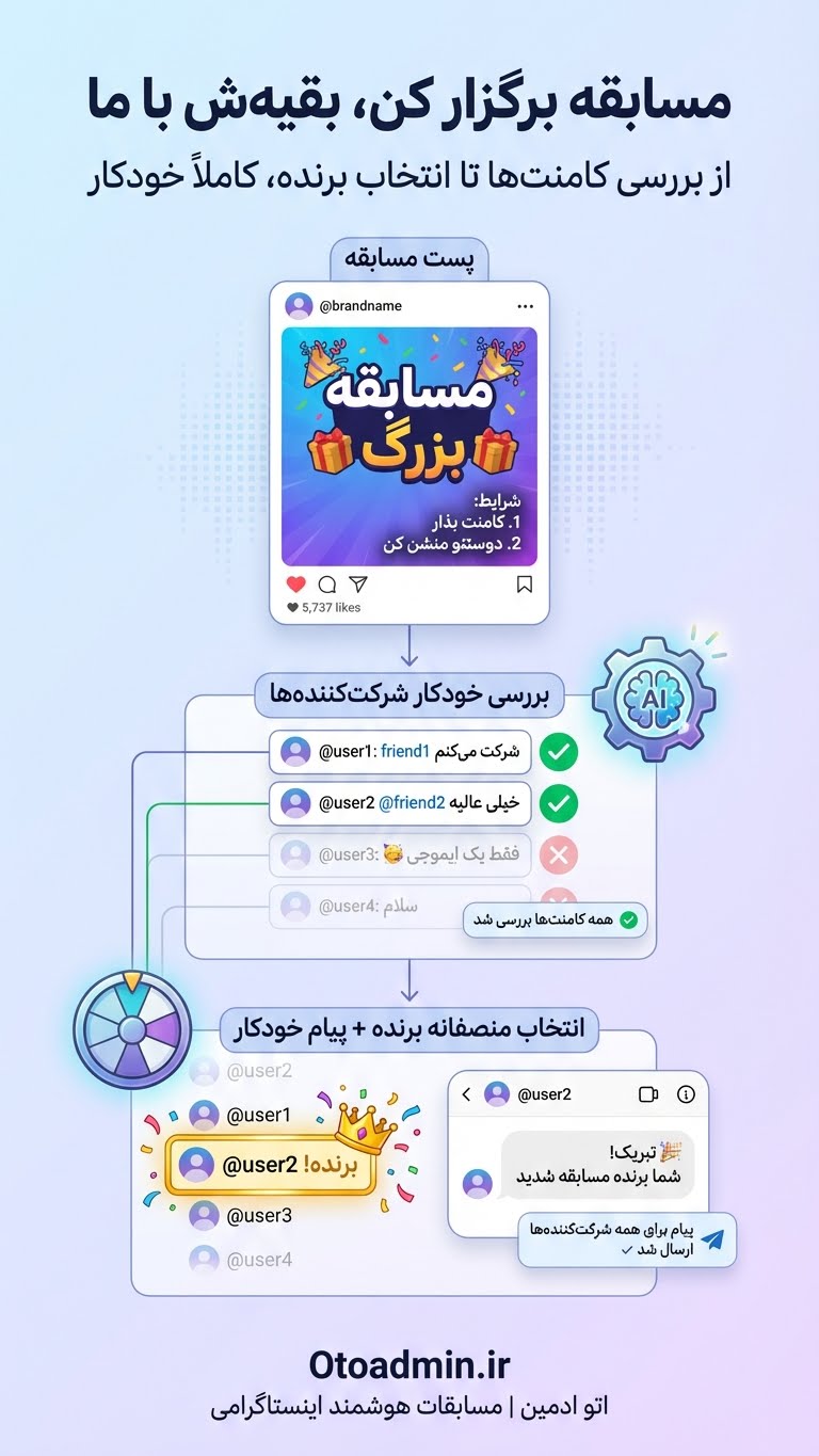 مسابقهها بالاخره منصفانه و خودکار شدن. چکِ فالو/تگ + پاسخ فوری = مشتریهای راضی.